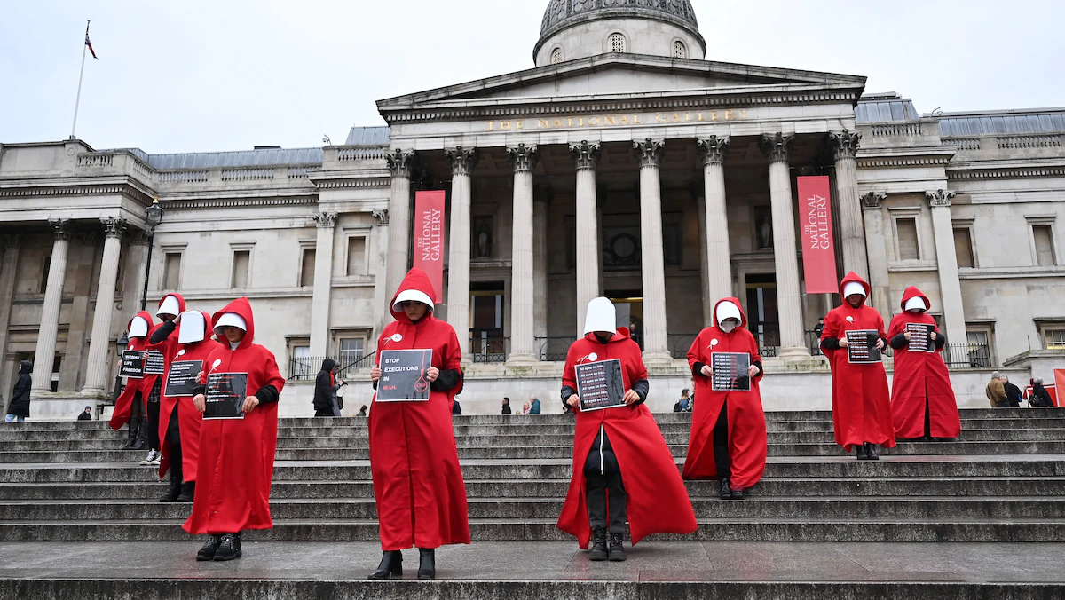 متظاهرات يحملن لافتات تندد بما يجري في إيران خلال مسيرة صامتة في العاصمة البريطانية لندن. 7 يناير 2023 - AFP