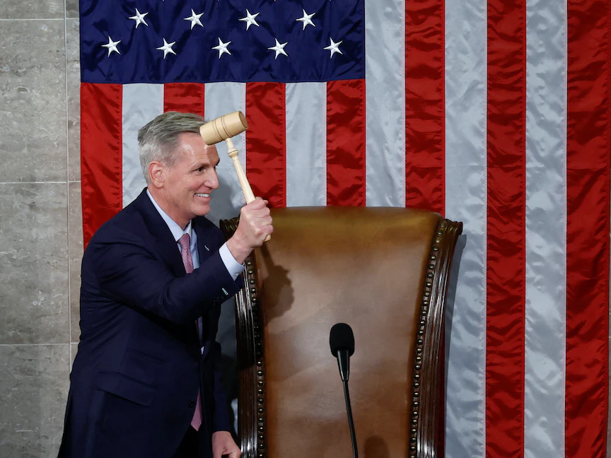 قبل جلسة التصويت الأولى لرئاسة مجلس النواب الأميركي الـ118، والتي عقدت الثلاثاء الماضي، قدم مكارثي، بعض التنازلات الرئيسية من أجل الفوز بالمنصب، بما في ذلك وضع قاعدة تسمح للمشرعين بفرض تصويت سريع على عزل رئيس المجلس من منصبه.