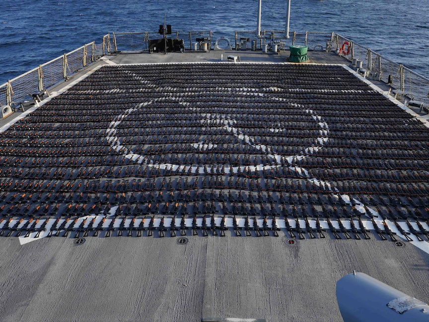 وتابع البيان: "اكتشف فريق من سفينة USS Chinook (PC 9) الساحلية الأسلحة وصادرها، وذلك بدعم من سفينة USS Monsoon (PC 4) ومدمرة الصواريخ الموجهة USS The Sullivans (DDG 68)".