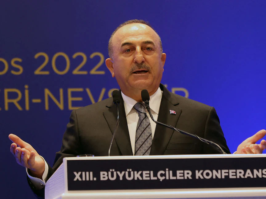 وزير الخارجية التركي مولود جاويش أوغلو يتحدث خلال المؤتمر الـ13 للسفراء في أنقرة - تركيا - 8 أغسطس 2022 - AFP