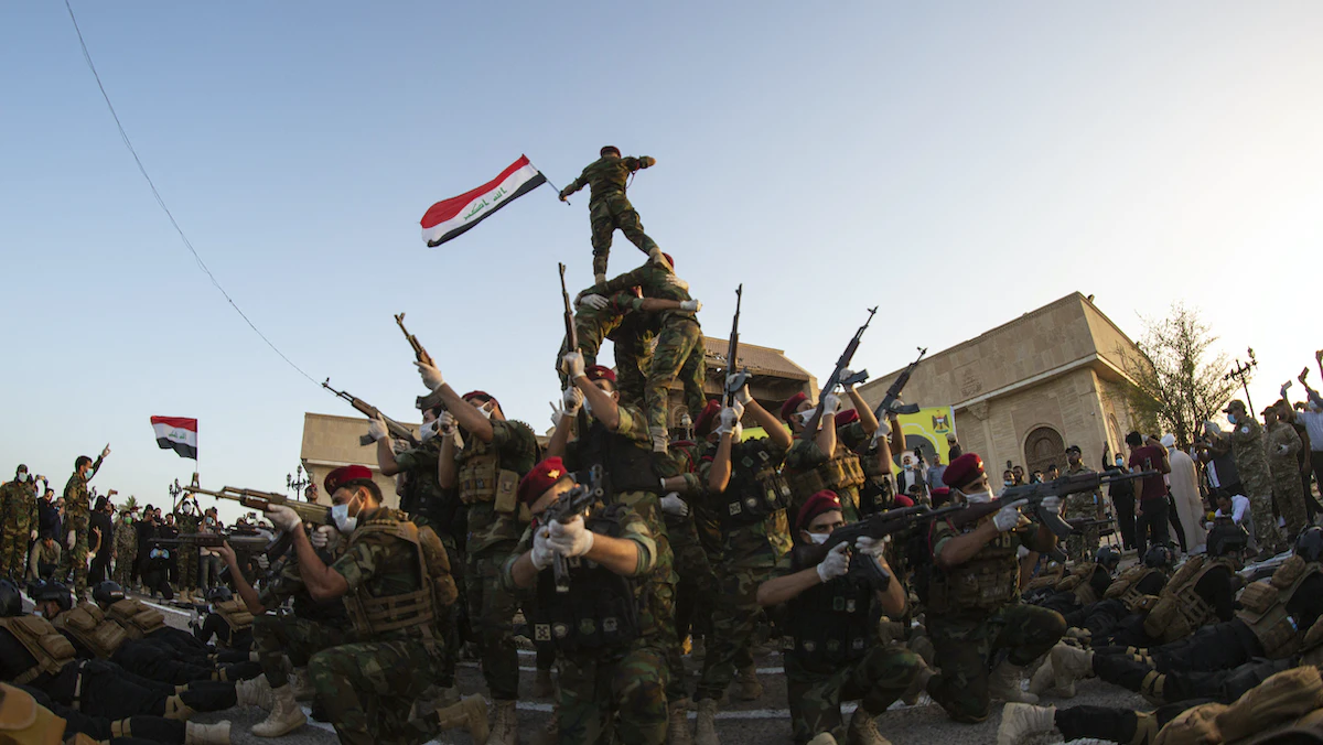 يحذر مسؤولون عسكريون رفيعو المستوى من أن الجماعات المسلحة تهدد بدفع العراق إلى أتون حرب أهلية. ويقول الفريق بول كالفيرت، قائد البعثة التي تقودها الولايات المتحدة في العراق وسوريا: "أعتقد أن العراق يواجه الآن تهديدين رئيسيين، أحدهما هو قوات الحشد الشعبي (الإطار الذي تنضوي تحته الجماعات المسلحة)، والثاني هو الاقتصاد".