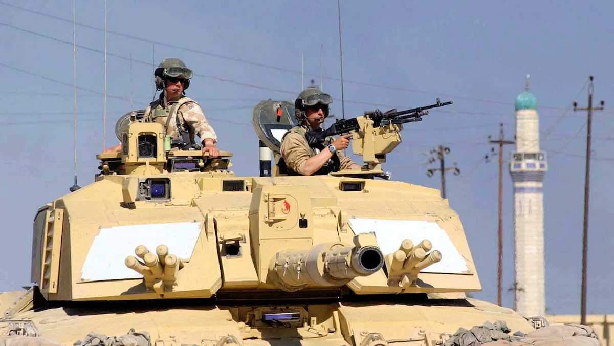 دبابة "تشالنجر 2" من فوج الدبابات الملكي البريطاني في دورية جنوب العراق. 2 أبريل 2003 - Reuters
