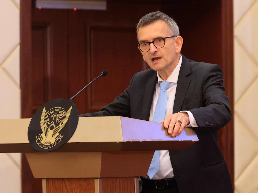 المبعوث الخاص للأمم المتحدة للسودان فولكر بيرتيس بعد توقيع الاتفاق الإطاري في السودان- 5 ديسمبر 2022 - AFP