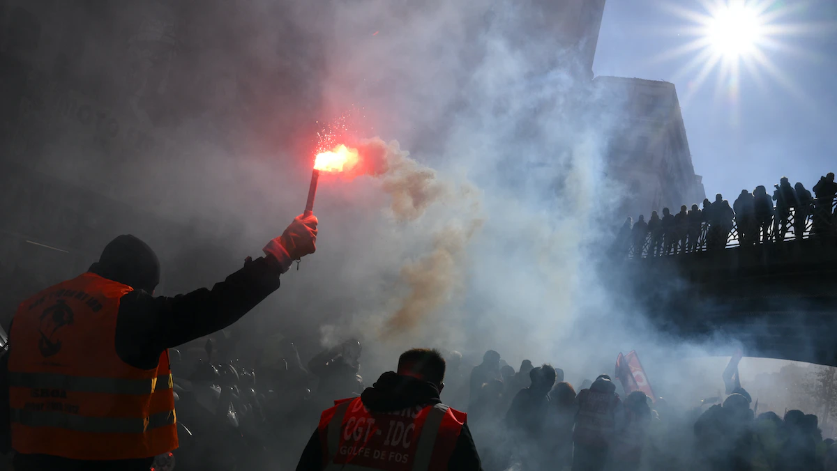 تشهد فرنسا إضرابات واسعة، الخميس، إذ بدأ سائقو قطارات ومعلمون وعمال مصافٍ وغيرهم، الانقطاع عن العمل، احتجاجاً على خطط الحكومة لرفع سن التقاعد عامين إلى 64.