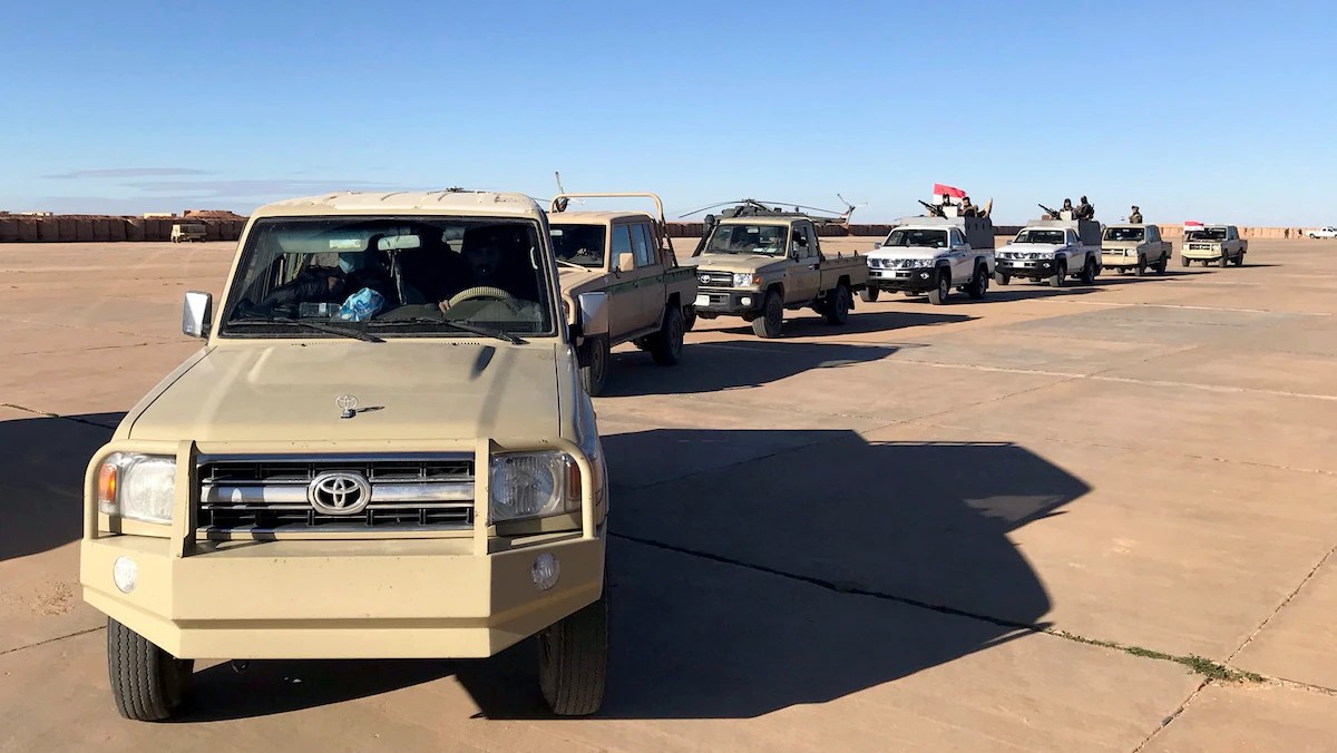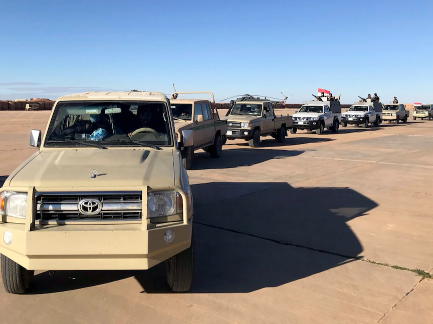 سيارات عسكرية للجيش العراقي تقوم بجولة في قاعدة الوليد الجوية بالقرب من التنف - العراق. 18 يناير 2021 - REUTERS