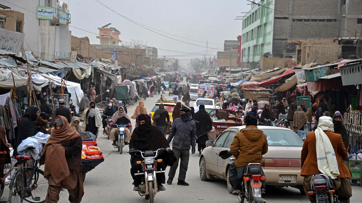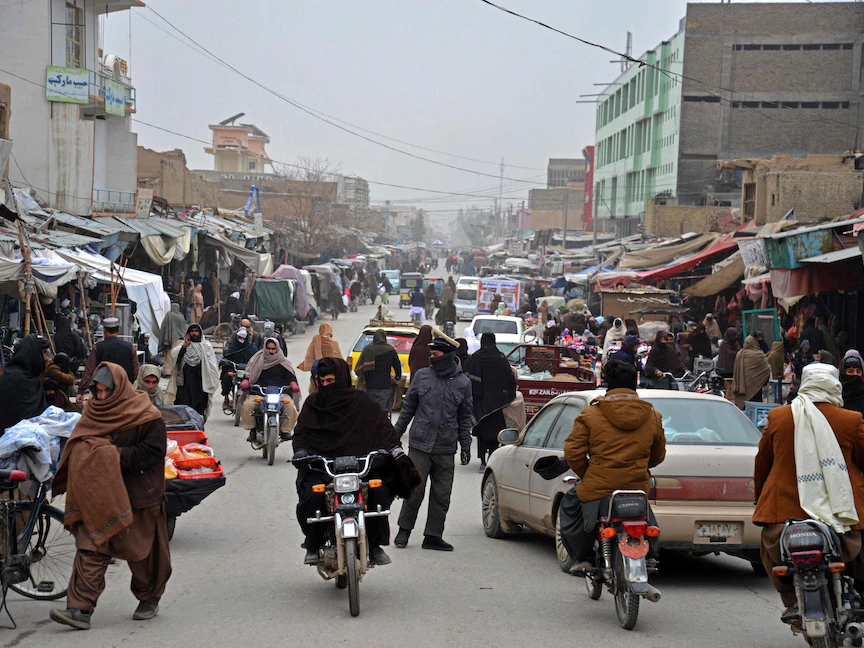 أفغان يسيرون في سوق مزدحم في قندهار، أفغانستان - 12 يناير 2023 - AFP