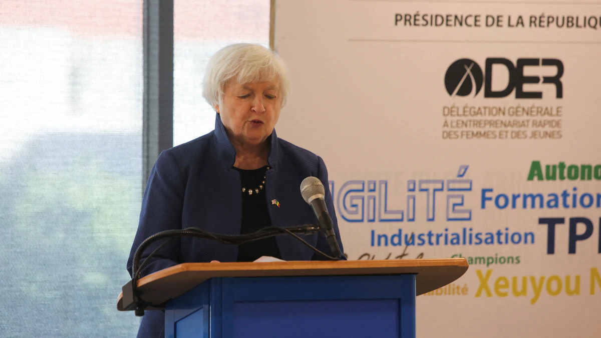 وزير الخزانة الأميركية تلقي كلمة في ندوة بالسنغال. 20 يناير 2023. - REUTERS