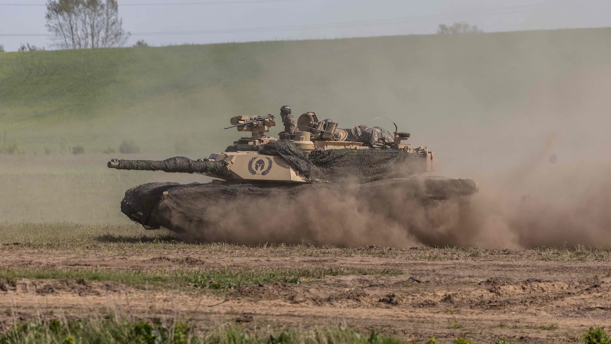 دبابة أبرامز أميركية خلال مناورات "ديفيندر يوروب 22" العسكرية بين الولايات المتحدة وفرنسا والسويد وبولندا. 19 مايو 2022 - AFP