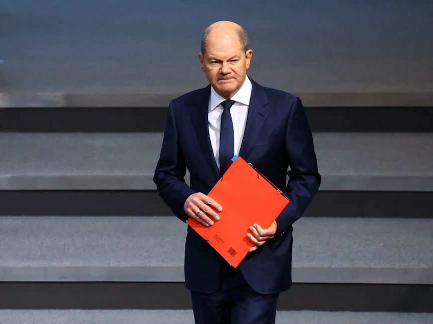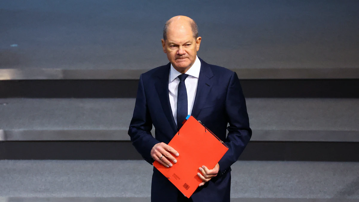 المستشار الألماني أولاف شولتز قبل إلقاء خطاب أمام البوندستاج في برلين - 25 يناير 2023 - REUTERS