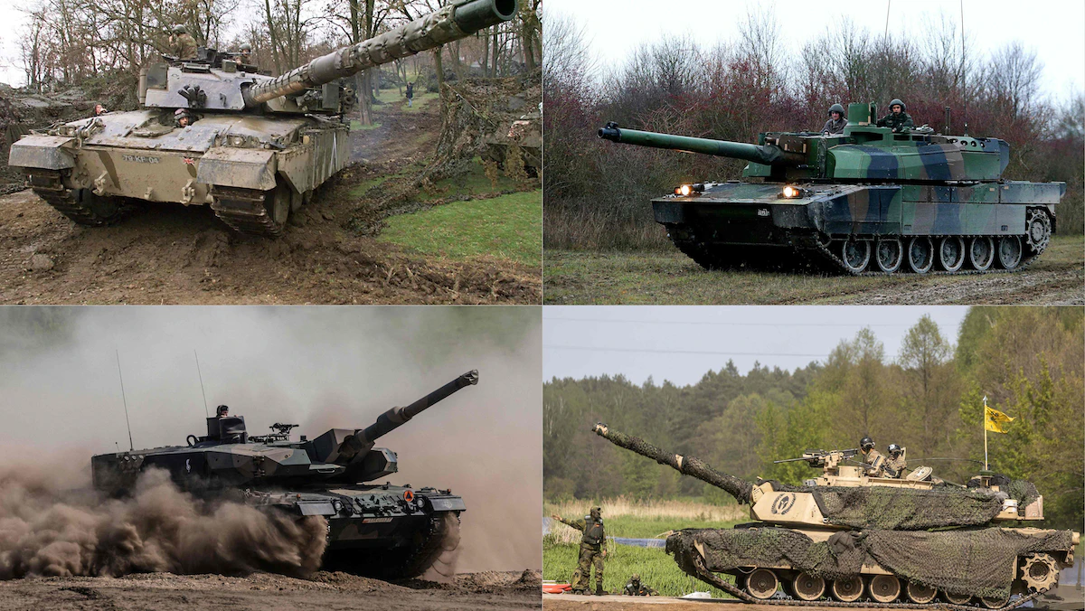 صور أرشيفية لدبابات من طراز "تشالنجر" البريطانية و"ليوبارد" الألمانية و"أبرامز" الأميركية تشارك في مناورات عسكرية بأماكن وأوقات مختلفة. 25 يناير 2023 - AFP