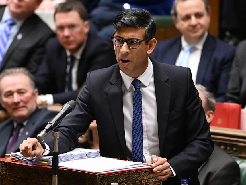 رئيس الوزراء البريطاني ريشي سوناك يتحدث أمام مجلس العموم البريطاني - 25 يناير 2023 - AFP