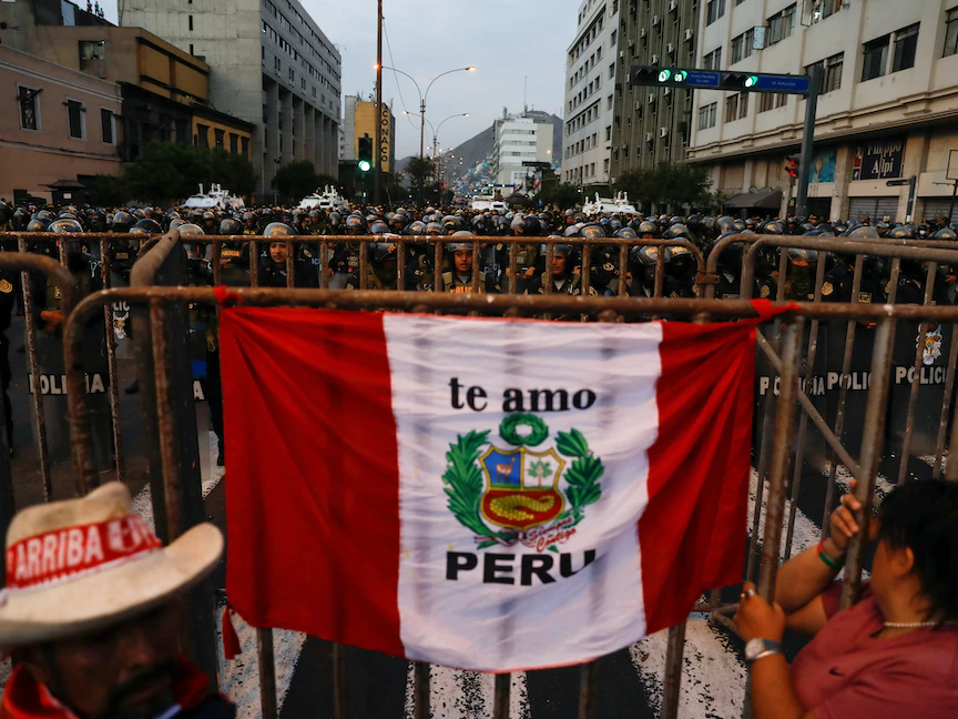 وتعصف ببيرو أزمة سياسية تترافق مع تظاهرات شبه يومية تطالب بإجراء انتخابات فورية ووضع دستور جديد، وأسفرت الاحتجاجات حتى الآن عن سقوط 48 شخصاً جراء المواجهات بين الشرطة والمتظاهرين.