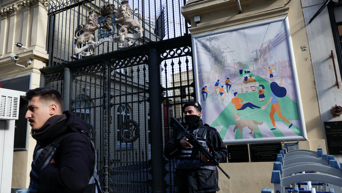 عناصر من الأمن التركي يحرسون مقر القنصلية الهولندية في إسطنبول. 1 فبراير 2023 - REUTERS