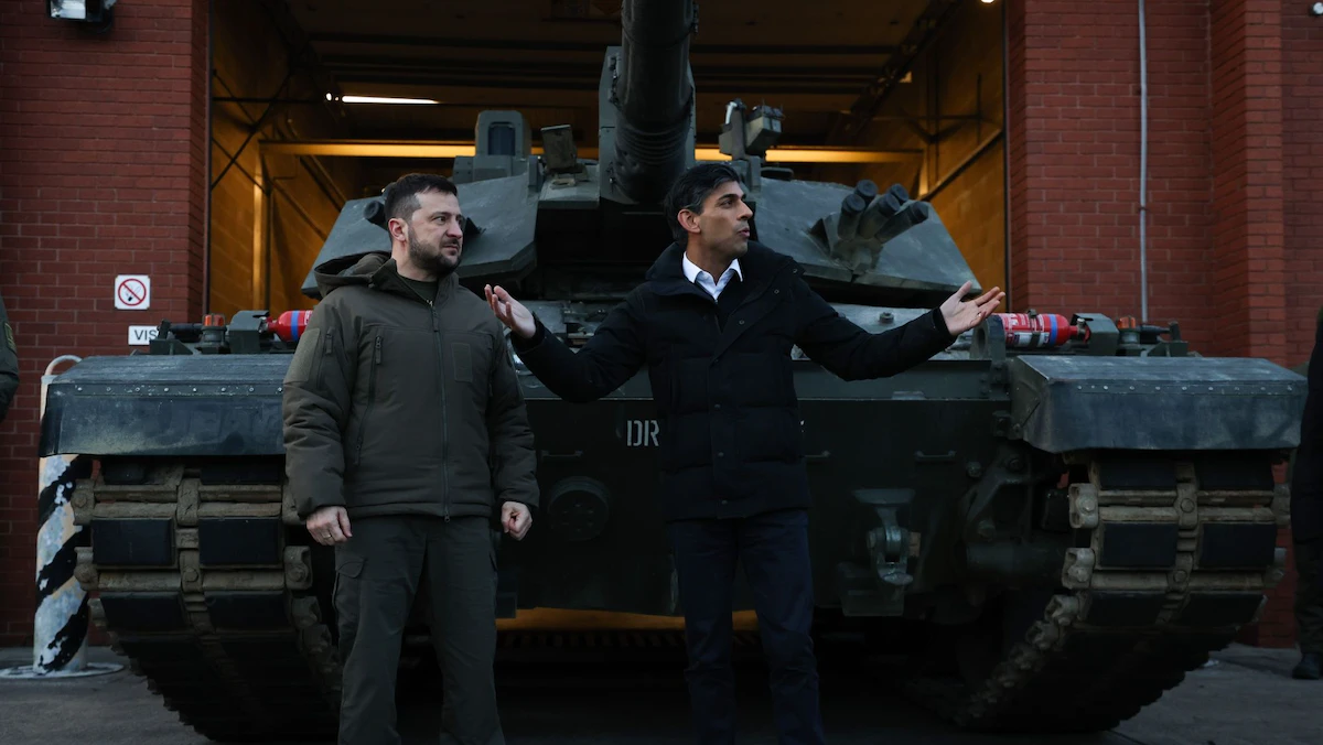 قال رئيس الوزراء البريطاني ريشي سوناك خلال استقباله الرئيس الأوكراني فولوديمير زيلينسكي في لندن مؤخراً، إنه لا يوجد شيء خارج طاولة البحث، في ما يتعلق بدعم أوكرانيا، حتى تحقق "نصراً عسكرياً حاسماً" في مواجهة روسيا.