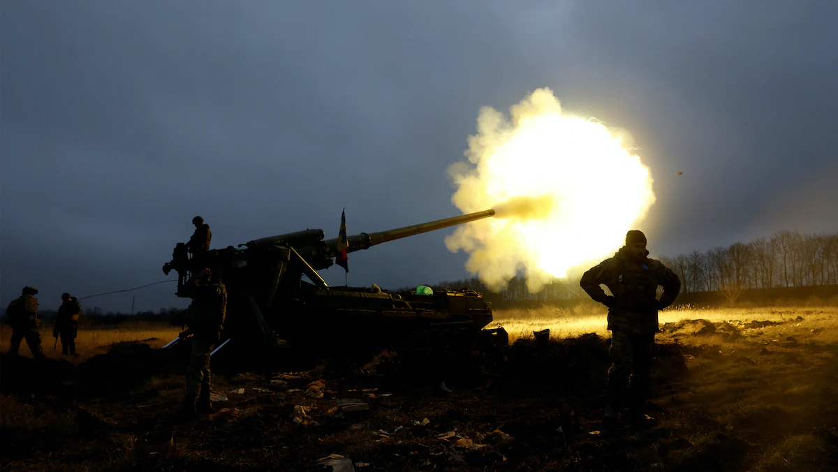 جنود أوكرانيون يطلقون قذائف مدفعية خلال قصف على جبهة قتال بمدينة باخموت شرقي أوكرانيا. 26 ديسمبر 2022 - REUTERS