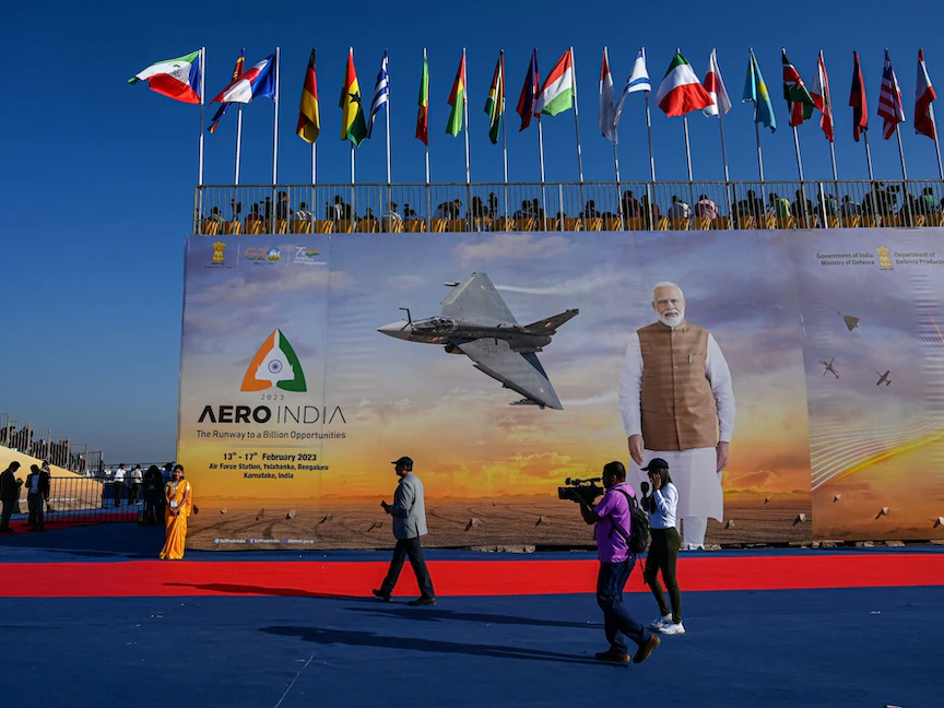 افتتحت الهند، الاثنين، معرض "آيرو الهند 2023" الجوي الذي يعقد في بنجالور كل عامين، بمشاركة نحو 800 شركة من عدة دول في مقدمتها الولايات المتحدة وروسيا، حيث تتطلع الدولة الواقعة في جنوب آسيا إلى تكثيف صناعتها المحلية وتصدير ما قيمته 5 مليارات دولار من المعدات العسكرية بحلول عام 2025.