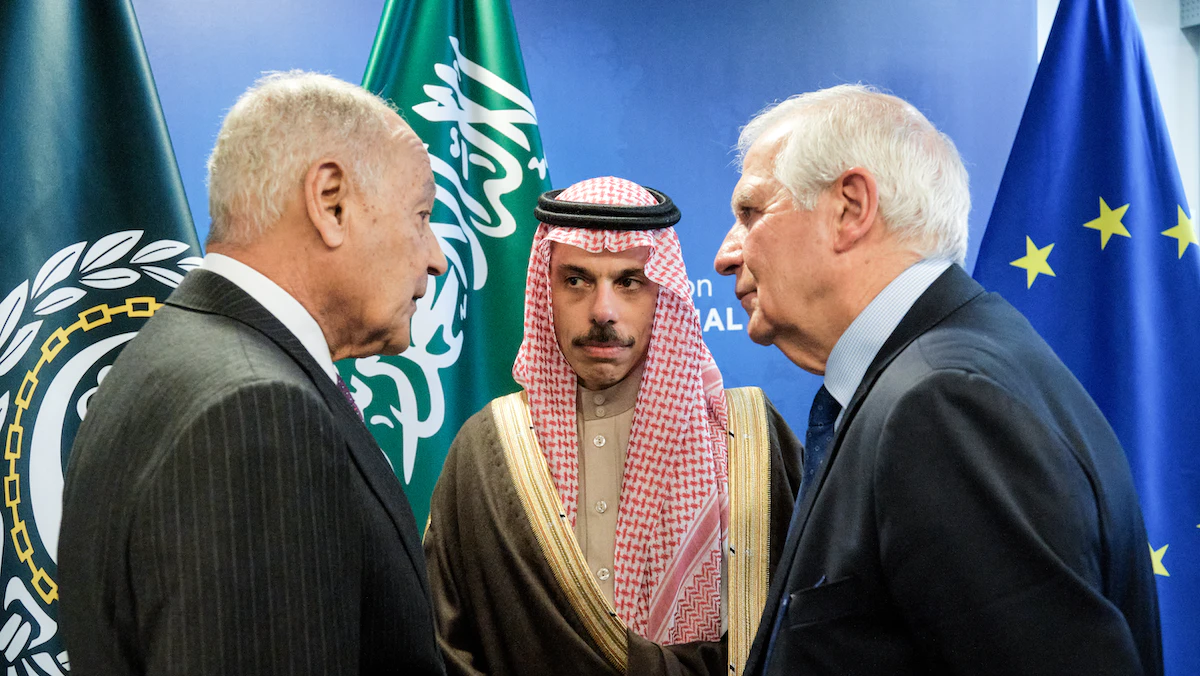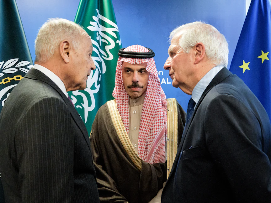 وعقد الممثل الأعلى للسياسة الخارجية ونائب رئيس المفوضية الأوروبية جوزيف بوريل، اجتماع ثلاثياً في بروكسل مع الأمين العام لجامعة الدول العربية أحمد أبو الغيط، ووزير الخارجية السعودية الأمير فيصل بن فرحان.