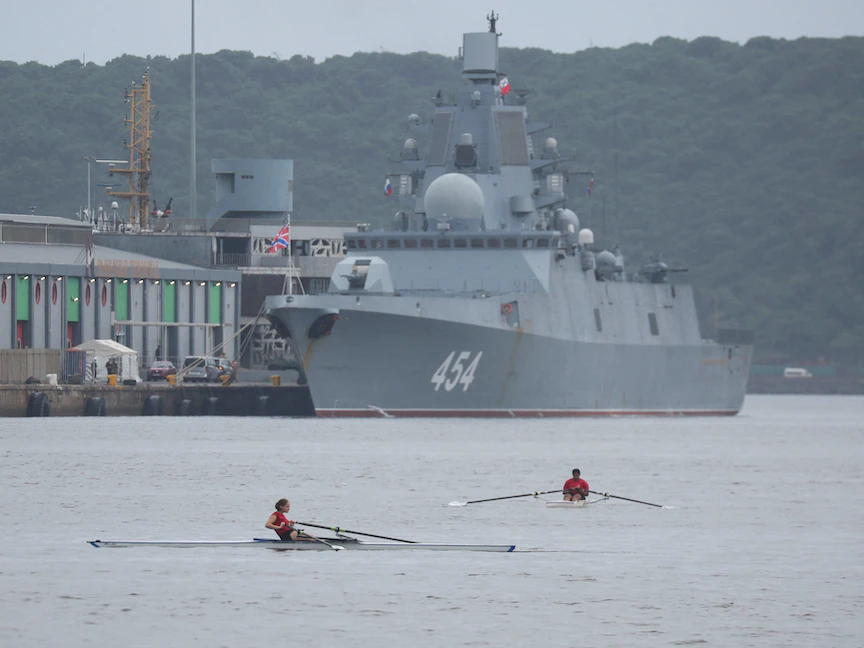 الفرقاطة الروسية "الأدميرال جورشكوف" راسية في دوربان قبل المشاركة في تدريبات مقررة مع الصين وجنوب إفريقيا، 17 فبراير 2023. - REUTERS