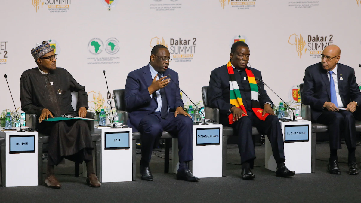 رؤساء السنغال ونيجيريا وزيمبابوي وموريتانيا خلال قمة "إطعام إفريقيا" التي استضافها الإتحاد الإفريقي في داكار. 15 يناير 2023. - REUTERS