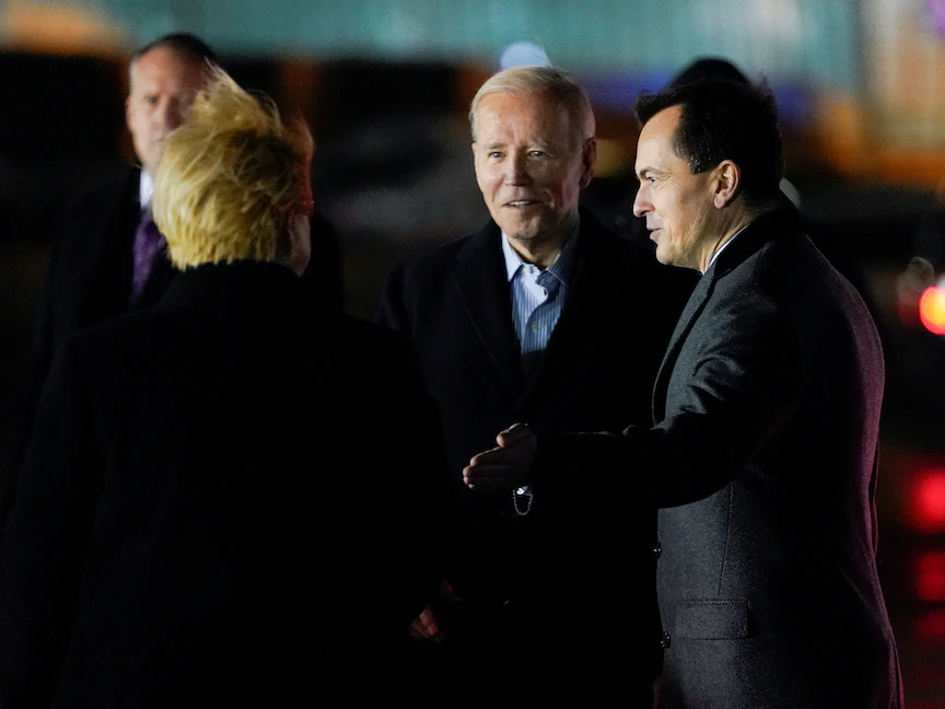 وصل بايدن إلى وارسو في وقت متأخر الاثنين، بعد زيارة مفاجئة لكييف حيث التقى الرئيس الأوكراني فولودومير زيلينسكي الذي يسعى للحصول على مزيد من الأسلحة مع استعداده لمهاجمة الروس في الربيع.