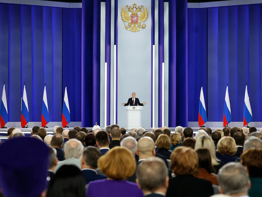 وأفاد بوتين في خطابه الذي يأتي قبل 3 أيام من الذكرى الأولى لبدء الغزو الروسي لأوكرانيا، بأن"النخب الغربية لا تخفي هدفها: إلحاق هزيمة استراتيجية بروسيا، أي القضاء علينا مرة واحدة وإلى الأبد".