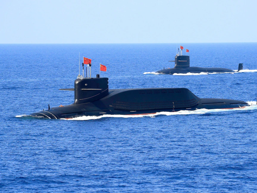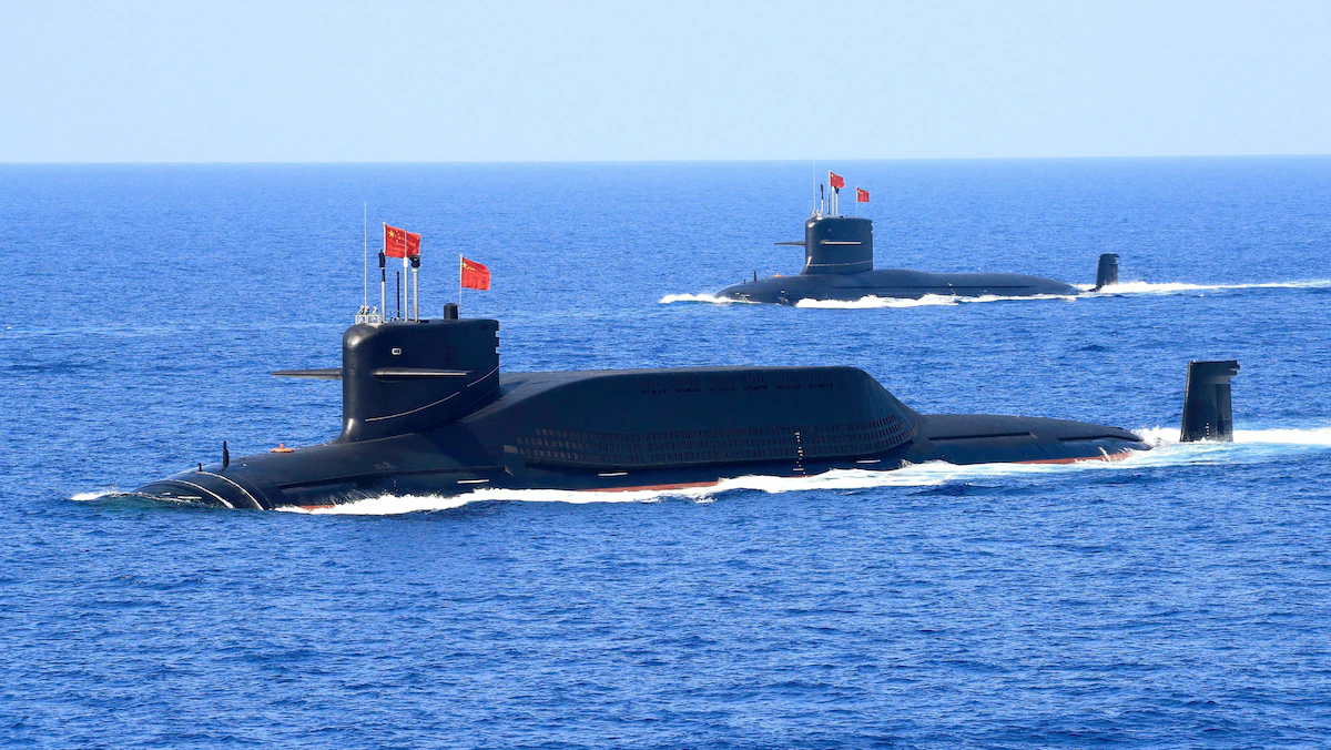 غواصة من طراز 094A تعمل بالطاقة النووية تابعة للجيش الصيني أثناء عرض عسكري في بحر الصين الجنوبي. 12 إبريل 2018 - REUTERS