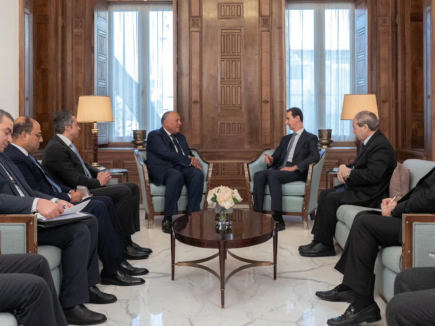 ونقل وزير الخارجية المصري سامح شكري إلى الرئيس السوري رسالة من الرئيس المصري عبد الفتاح السيسي أكد فيها تضامن مصر مع سوريا واستعدادها لمواصلة دعم السوريين لمواجهة آثار الزلزال، بحسب بيان للرئاسة السورية.