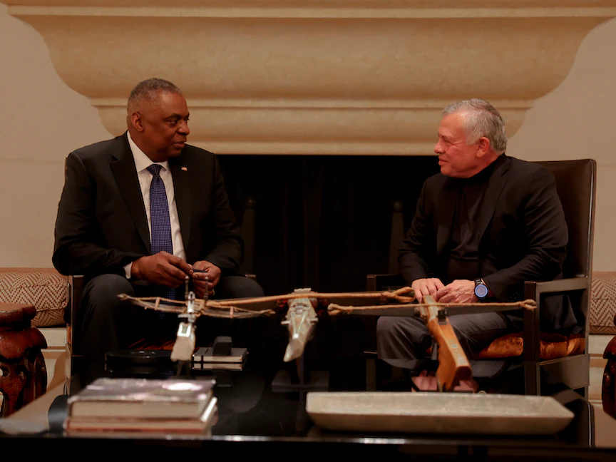 دعا ملك الأردن عبد الله الثاني، خلال استقبال وزير الدفاع الأميركي لويد أوستن في عمّان، الأحد، إلى ضرورة "التهدئة" و"خفض التصعيد" في الأراضي الفلسطينية، مطالباً بـ"خلق أفق سياسي يُمهد الطريق إلى إعادة إطلاق مفاوضات السلام".