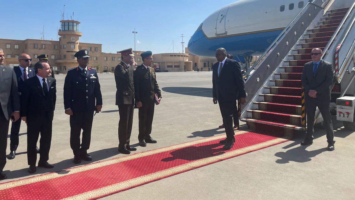 وقالت وزارة الدفاع الأميركية "البنتاجون" إن اجتماعات أوستن نُقلت من وزارة الدفاع الإسرائيلية إلى قرب مطار تل أبيب.