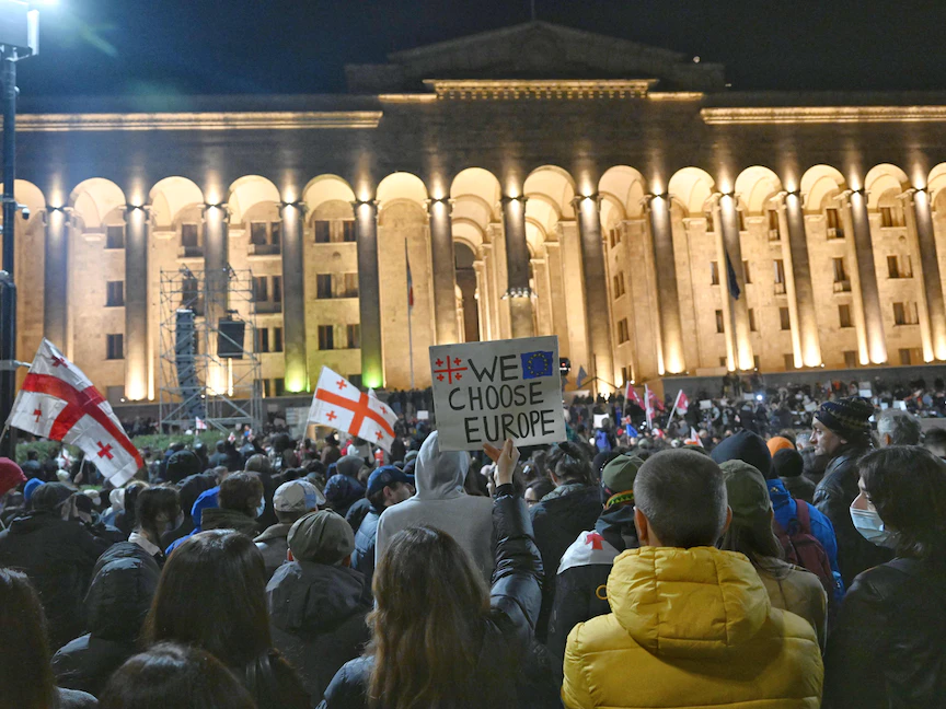 وخرج عشرات الآلاف من الجورجيين إلى الشوارع في العاصمة تبليسي لمدة ثلاث ليال متتالية للاحتجاج على التشريع، الذي يهدد عمل وسائل الإعلام والمنظمات غير الحكومية، وسط مخاوف من أن يدفع القانون بالبلاد نحو مسار استبدادي.