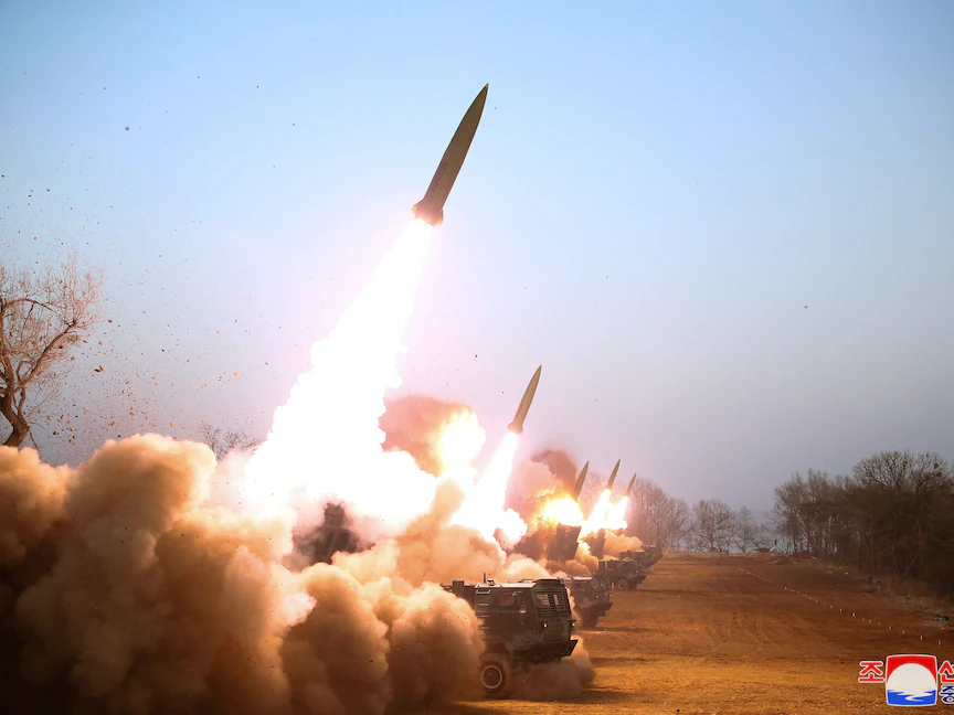 وأظهرت صور نشرتها وكالة الأنباء الكوية الشمالية، الخميس، إطلاق 6 صواريخ على الأقل في الوقت نفسه، فيما قال جيش كوريا الجنوبية إن الجارة الشمالية أطلقت صاروخاً باليستياً قصير المدى قبالة ساحلها الغربي، مضيفاً أنه ينظر في احتمالات إطلاق كوريا الشمالية عدة صواريخ في وقت واحد من المنطقة نفسها.