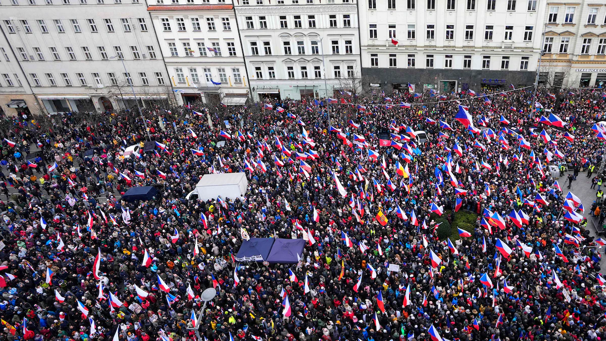 تظاهر آلاف التشيكيين في براغ، السبت، احتجاجاً على سياسات حكومتهم ومعدلات التضخم المرتفعة، مطالبين بإنهاء الدعم العسكري الذي تقدمه بلادهم لأوكرانيا.