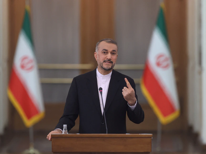 وزير الخارجية الإيراني حسين أمير عبد اللهيان خلال مؤتمر صحافي في العاصمة طهران. 23 نوفمبر 2022 - REUTERS