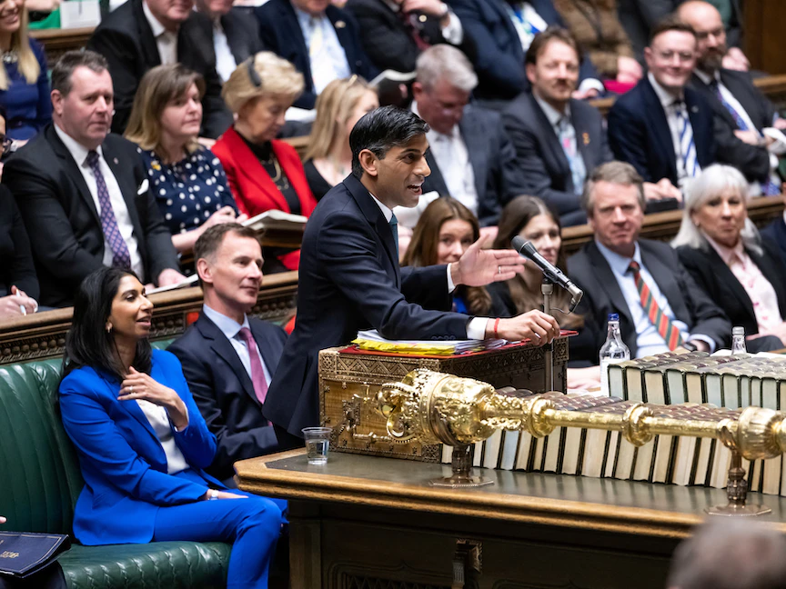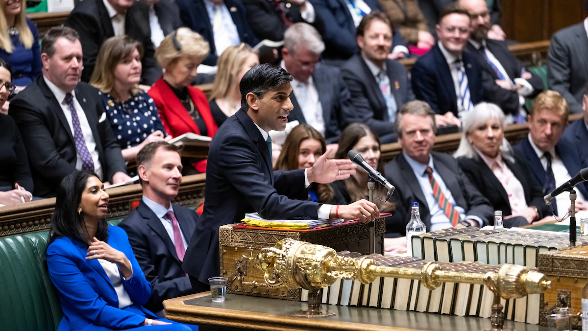 رئيس الوزراء البريطاني ريشي سوناك في كلمة له أمام مجلس العموم (البرلمان). 8 مارس 2023 - via REUTERS