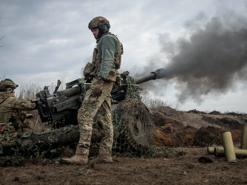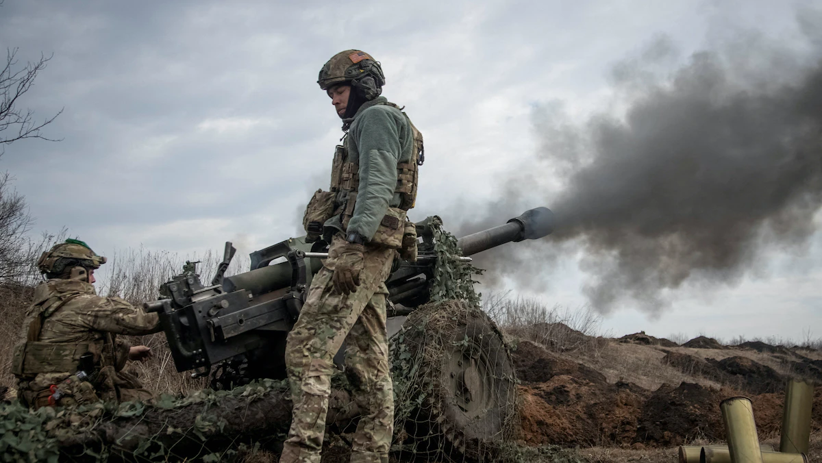جنود أوكرانيون يطلقون قذيفة بالقرب من مدينة باخموت بأوكرانيا. 10 مارس 2023 - REUTERS