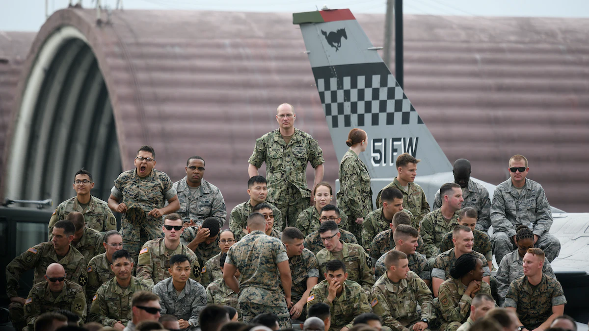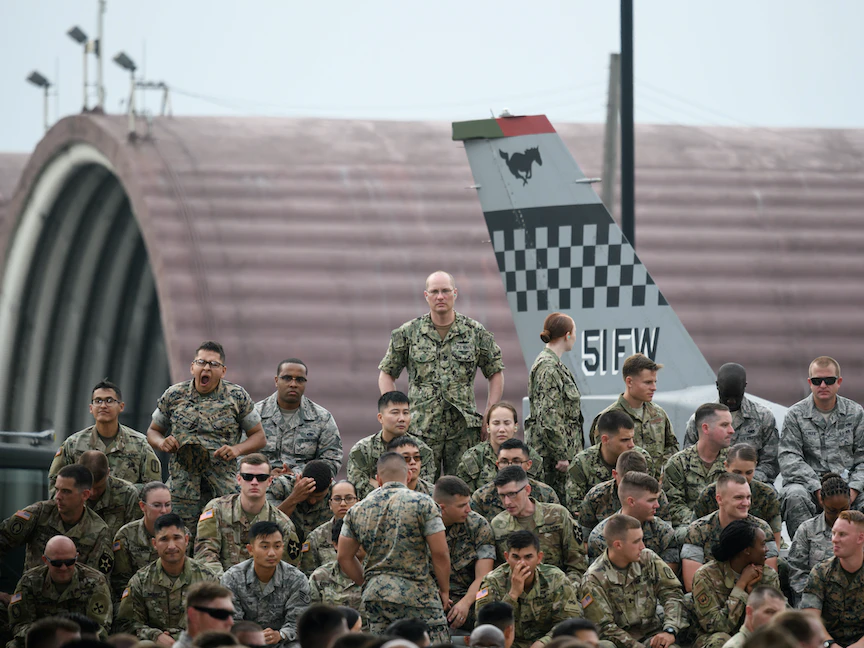 جنود أميركيون في قاعدة أوسان الجوية على مسافة 64 كيلو متراً شمالي العاصمة الكورية الجنوبية سيول- 30 يونيو 2019 - REUTERS