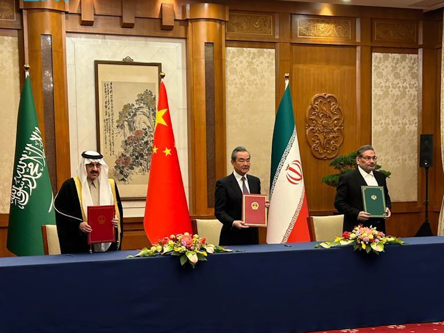 وأجرت السعودية وإيران مباحثات عدة، استمرت على مدار عامين، في بغداد ومسقط، توّجت باتفاق أبرم في العاصمة الصينية بكين في 10 مارس الجاري، على عودة العلاقات بين البلدين، وتبادل البعثات الدبلوماسية خلال شهرين من توقيع الاتفاق.