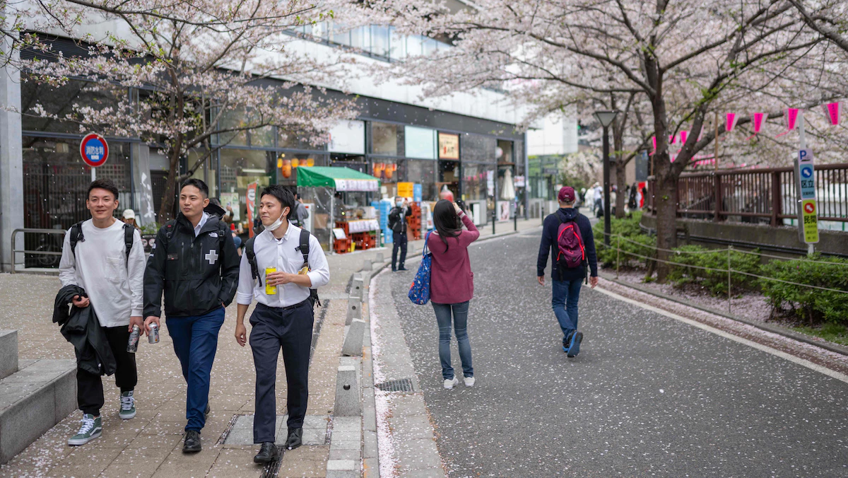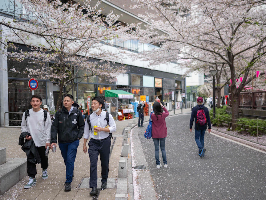 عدد من الأشخاص يسيرون تحت أزهار الكرز في العاصمة اليابانية طوكيو. 31 مارس 2023 - AFP