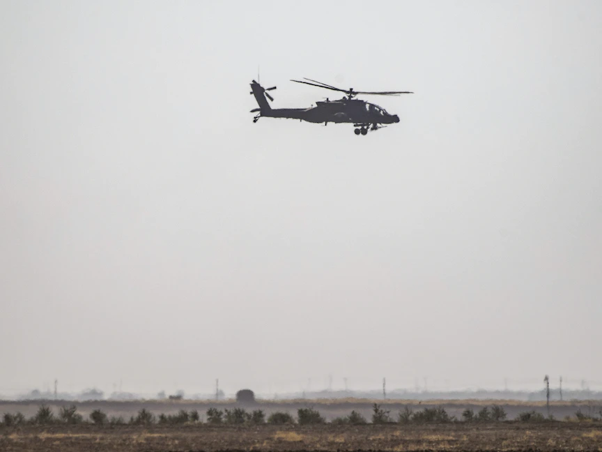 طائرة مروحية هجومية من طراز أباتشي خلال تحليقها في محافظة الحسكة شمال شرقي سوريا- 15 سبتمبر 2020 - AFP