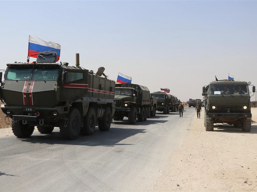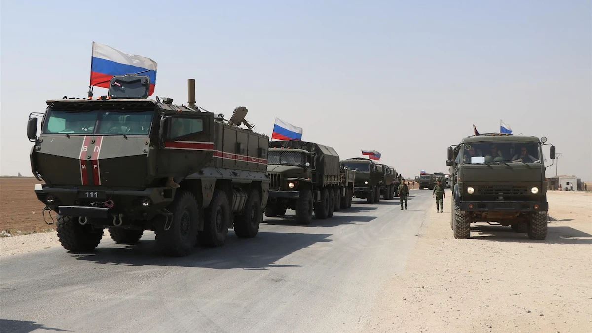 عربات عسكرية روسية في طريقها إلى نقاط عسكرية روسية في القامشلي. سوريا. 14 سبتمبر 2020 - Getty Images
