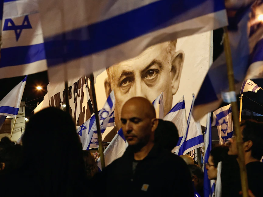 ومنذ الإعلان عن مشروع الإصلاح القضائي مطلع يناير يتجمع عشرات آلاف الإسرائيليين أسبوعياً للتنديد به وانتقاد الحكومة التي ألّفها نتنياهو في ديسمبر.
