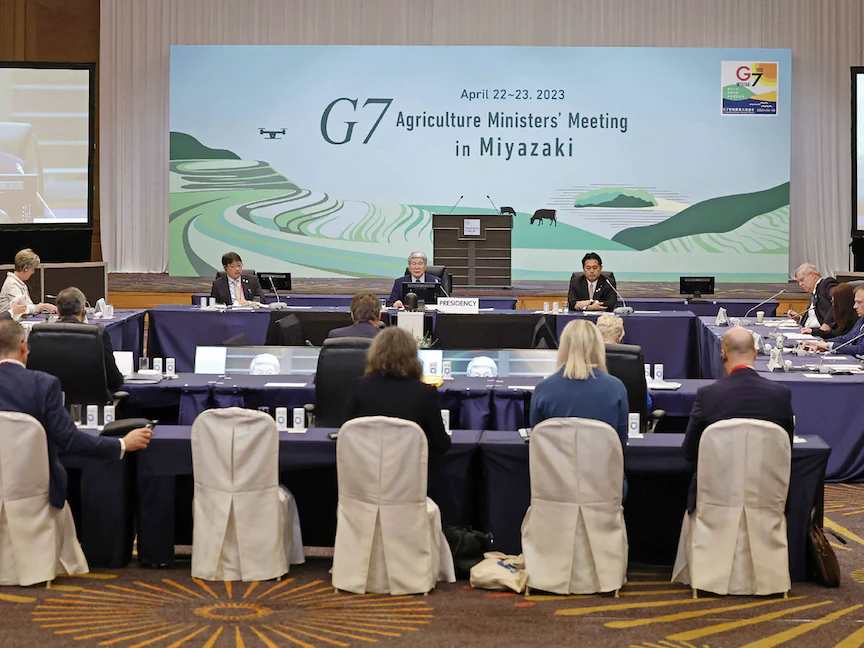 وزراء الزراعة بمجموعة السبع خلال اجتماعهم في مدينة ميازاكي جنوب غرب اليابان. 22 أبريل 2023 - AFP