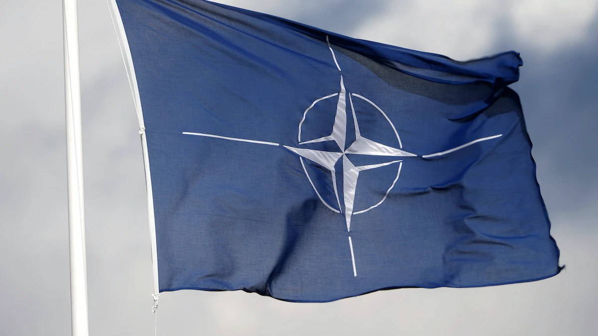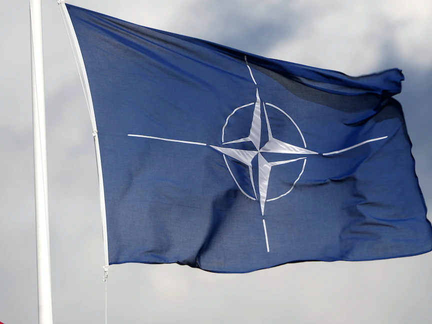 علم حلف شمال الأطلسي يرفرف بقاعدة تابا العسكرية في إستونيا. 30 أبريل 2023 - REUTERS