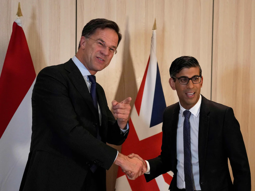 قالت رئاسة الحكومة البريطانية، الثلاثاء، إن بريطانيا تعتزم تشكيل "تحالف دولي" لمساعدة أوكرانيا في الحصول على مقاتلات من طراز F 16، وذلك إثر لقاء جمع بين رئيس الوزراء ريشي سوناك ونظيره الهولندي مارك روته، في أيسلندا، حيث تعقد قمة مجلس أوروبا.