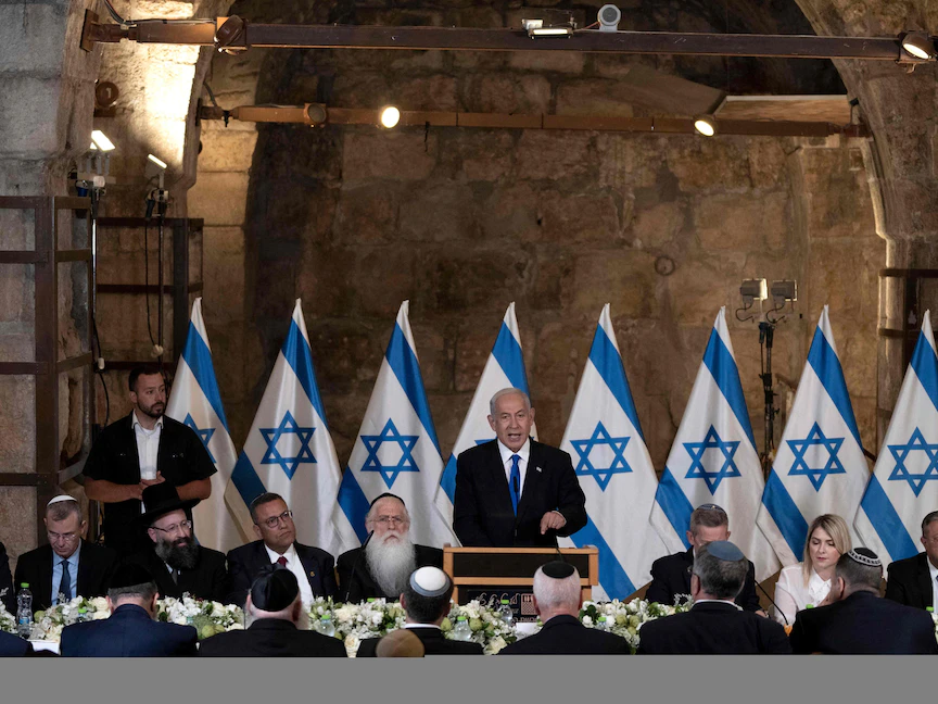 جانب من اجتماع الحكومة الإسرائيلية داخل الأنفاق أسفل حائط البراق في القدس. 21 مايو 2023 - AFP