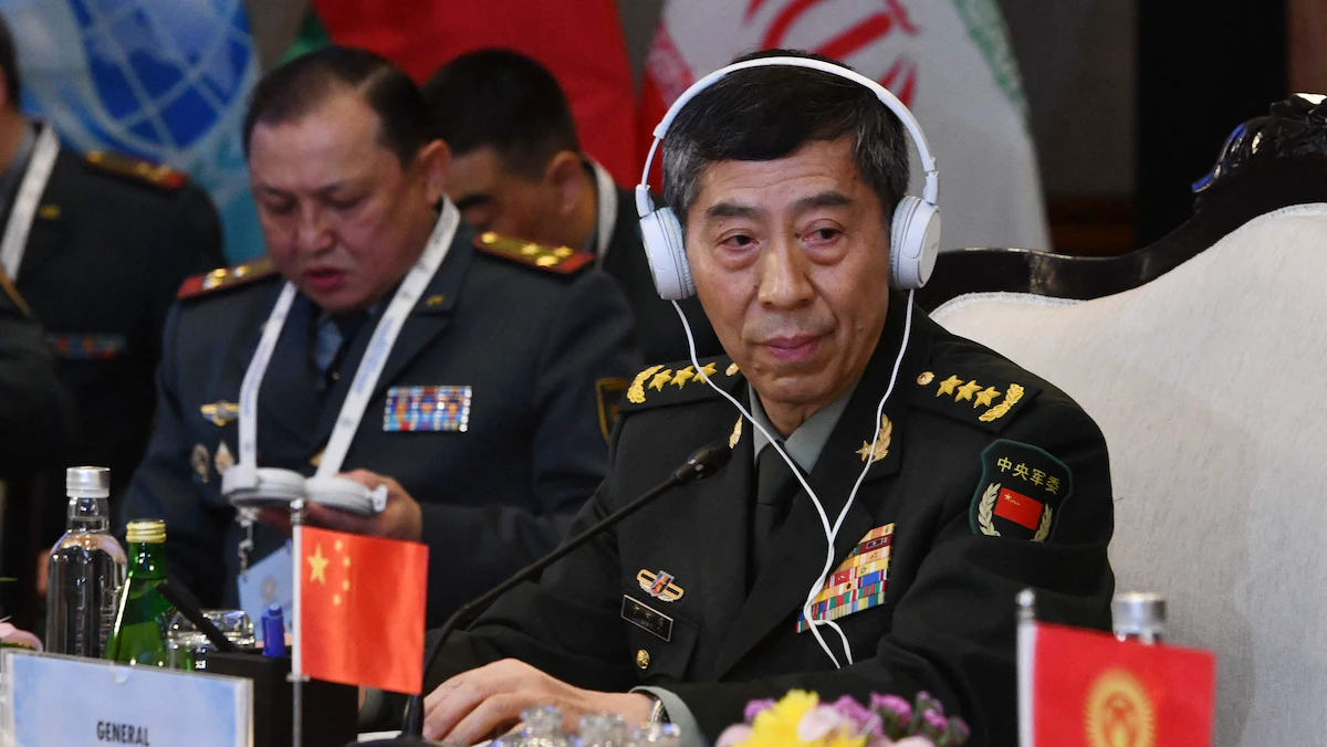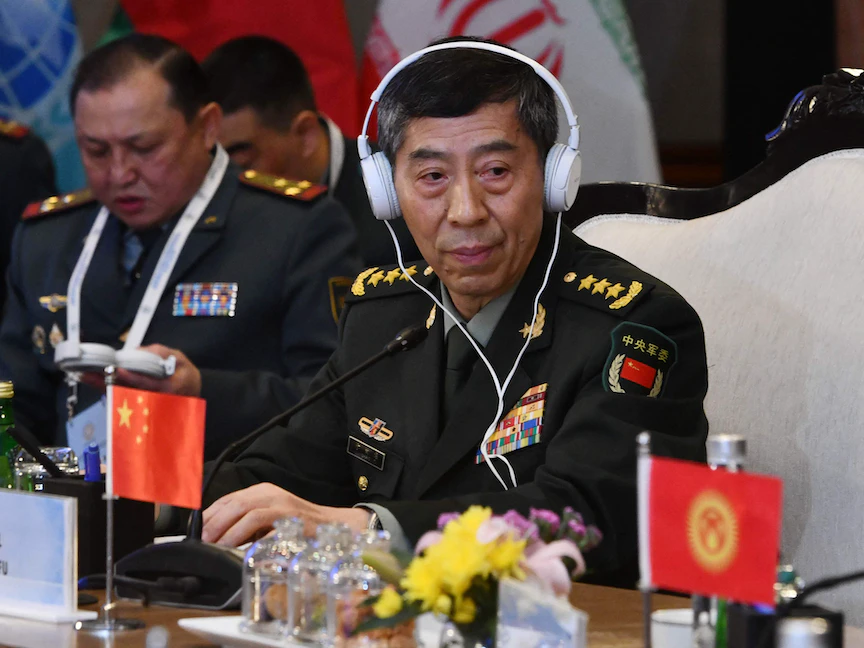 وزير الدفاع الصيني لي شانجفو خلال اجتماع منظمة شنغهاي للتعاون في نيودلهي. 28 أبريل 2023 - AFP