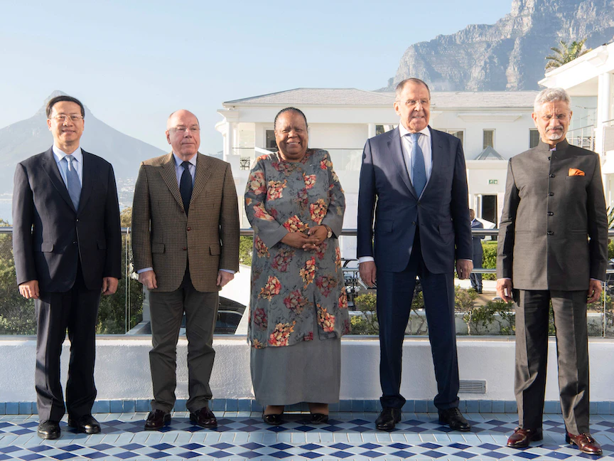وحضر وزراء خارجية البرازيل، وروسيا، والهند، اجتماعاً في كيب تاون، الخميس، في حين مثل الصين وكيل وزارة، ولم يتم الإعلان عن أي جدول أعمال رسمي.