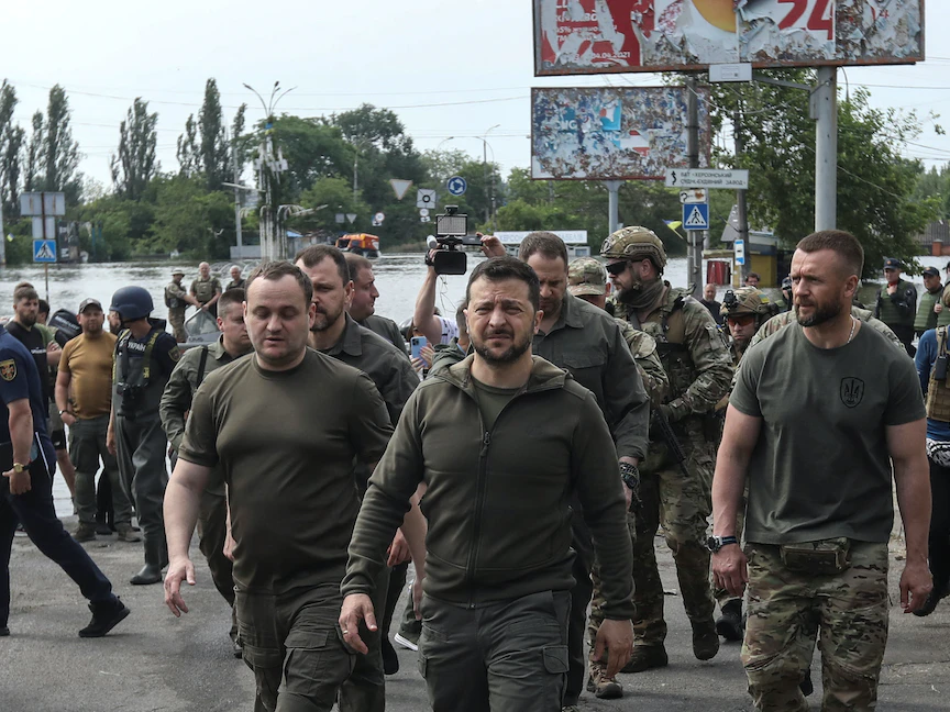 وكتب زيلينسكي في تعليق مصاحب لتسجيل مصور لزيارته: "ناقشت العديد من القضايا المهمة. الوضع التشغيلي في المنطقة نتيجة الكارثة وإجلاء السكان من مناطق الفيضانات المحتملة، وإنهاء حالة الطوارئ التي سببها انفجار السد، وتنظيم عمليات الدعم للمناطق المنكوبة".