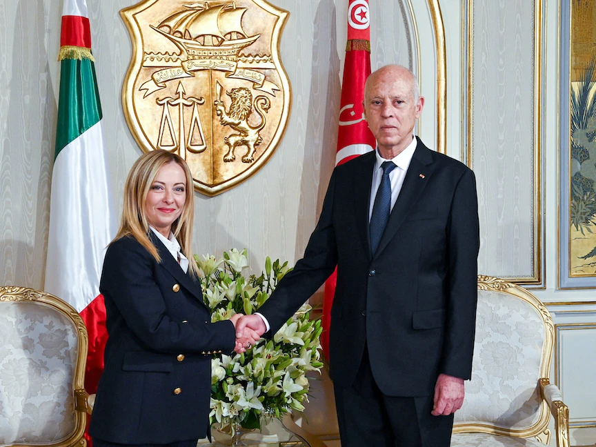 وسوف تسافر رئيسة وزراء إيطاليا إلى تونس، الأحد، مع رئيس وزراء هولندا مارك روته، ورئيسة المفوضية الأوروبية أورسولا فون دير لاين.