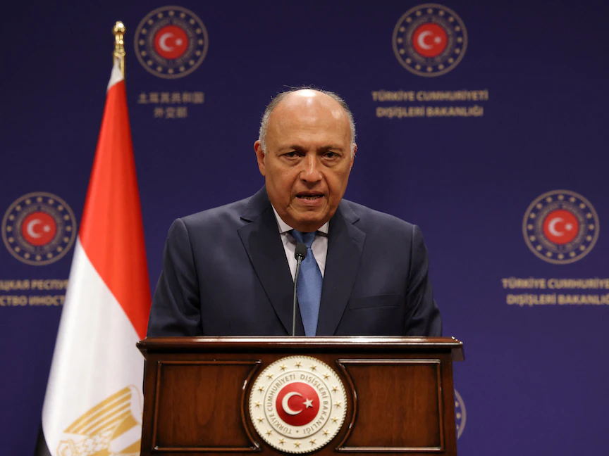 وزير الخارجية المصري سامح شكري في مؤتمر صحافي في العاصمة التركية أنقرة. 13 أبريل 2023 - REUTERS